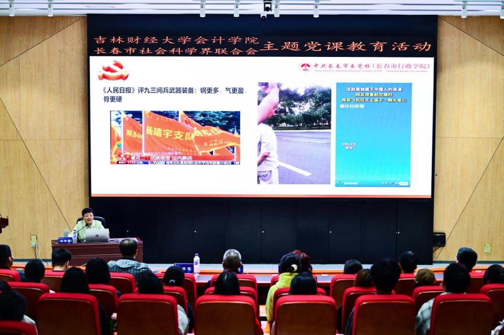 10月9日,会计学院与长春市社会科学界联合会共同举办主题党课教育活动。长春市社会科学界联合会刘薇,中共长春市委党校哲学教研部副教授路琳娜参加活动。
